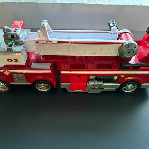 Paw Patrol legetøjsbrand Paw Patrol brandbil med rød og grå farve og en tilhørende figur.