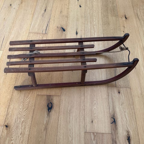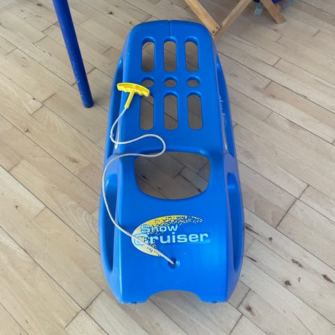 Fin kælk med bremser og trækkesnor. Fungerer fint.
