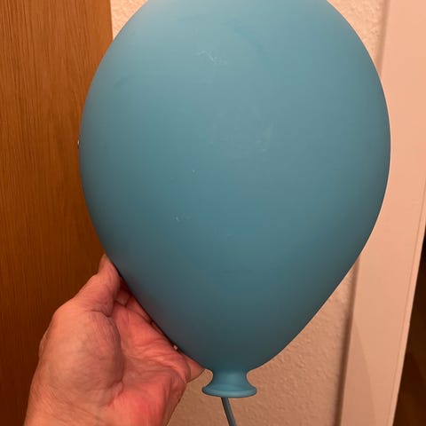 IKEA lampe i rød farve med elektrisk ledning og fatning til pære. Lampen forestiller en rød ballon og er designet til indendørs brug.