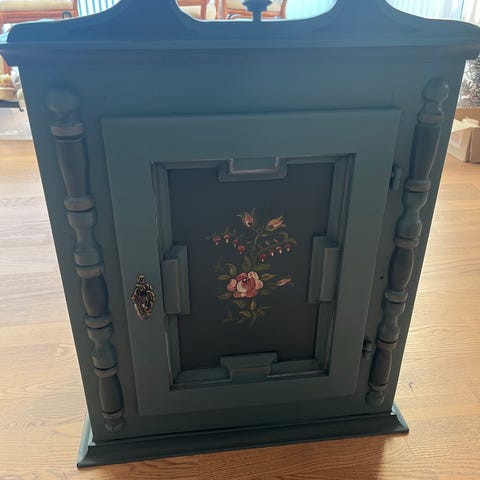 Lækker, gammelt snedkerbygget vitrineskab søger nyt hjem at pynte i og opbevare for!
