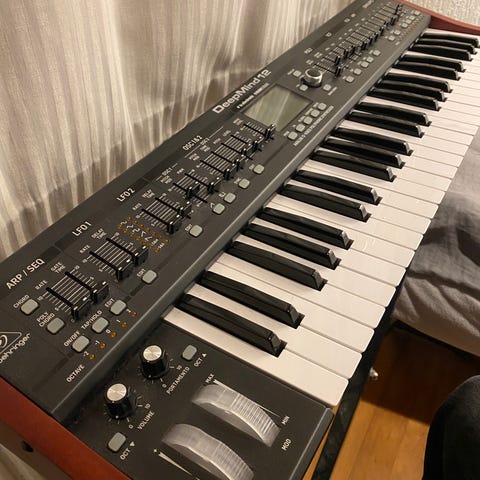 Velholdt DeepMind 12 sælges, lækker lille analog polysynth med 12 voices, 49 keys og et væld af fede effekter. Fungerer perfekt, er i pæn stand og sælges pga. oprydning. Den er ikke større end at jeg godt vil tilbyde at sende den.