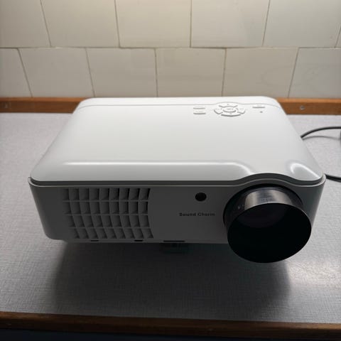 Projektor inklusiv ophæng så den kan hænge loftet. Fungerer helt fint!
