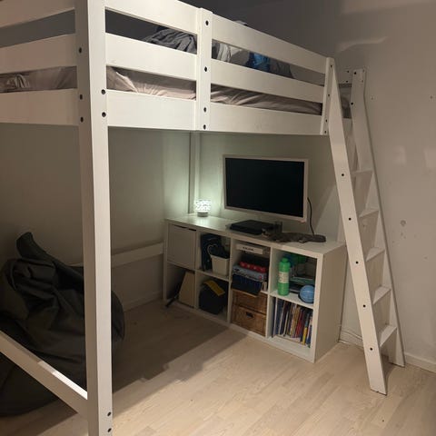 Fin og praktisk etageseng i stål. Madras ovenpå følger med, men madrassen nede følger ikke med. Sengen er skilt ad.