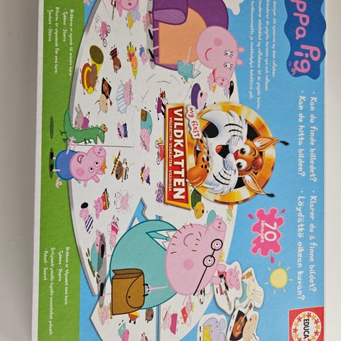 Peppa Pig Vildkatten brætspil med 202 brikker. Spillet inkluderer bræt og brikker med Peppa Pig-tema. Egnet til børn og familier til underholdning og læring.