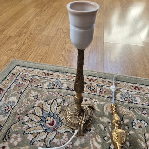 To styks messing lampe ‘fødder’ med fatning. Ældre dato
