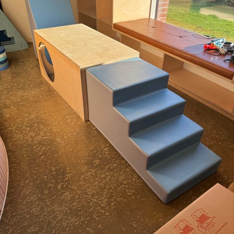 De 3 store trin hjælper mindre børn til lettere at kunne kravle op ad trinnene. Samtidig har det en god bredde der sikrer de små ikke så let mister balancen.