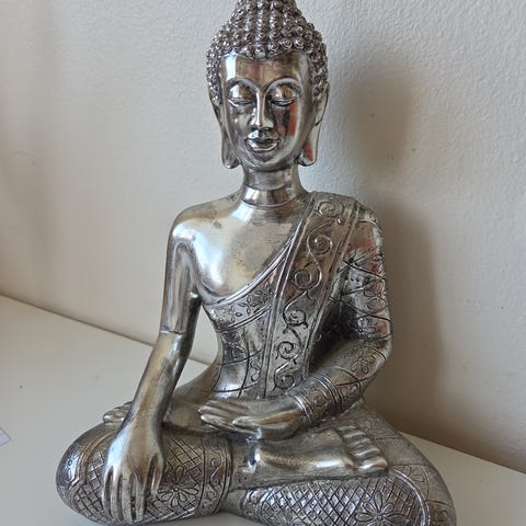 Dekorativ Buddha figur i sort og sølv