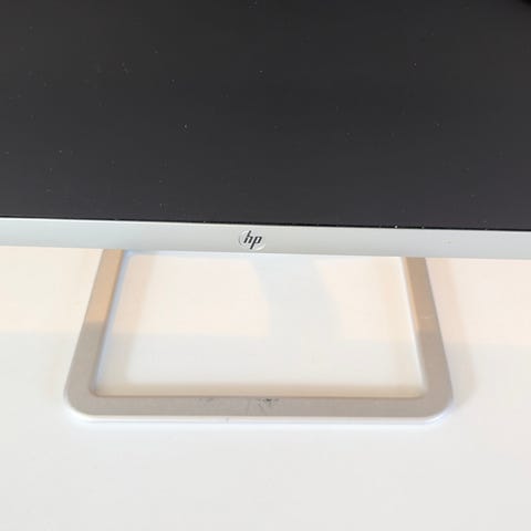 HP Stand model 820444-001 til computerskærm. Fremstillet i metal og plast materialer. Designet til at støtte og hæve skærmen for bedre ergonomi.