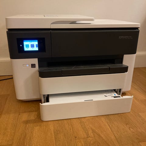 HP OfficeJet Pro 7740 multifunktionsprinter med funktioner til print, fax, scanning og kopiering og som kan udskrive med uoriginal blæk.