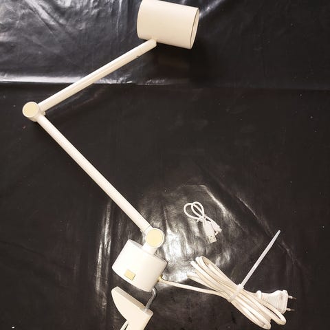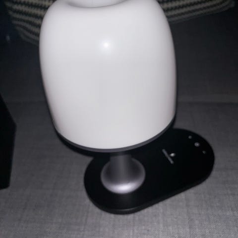 Flot og velholdt bordlampe med trådløs opladning samt USB stik i front af sokkel.