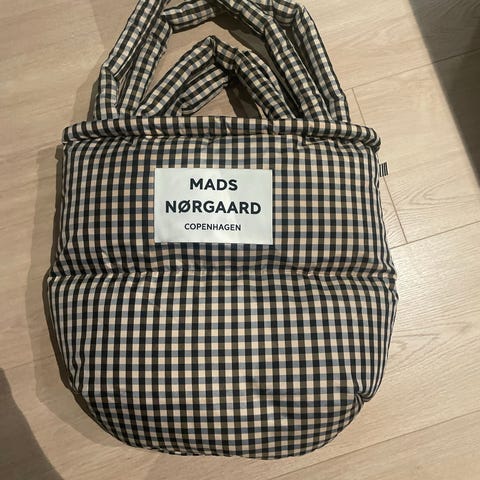 Blød shopper fra Mads Nørgaard. God stand. Farve hvid/sort tern