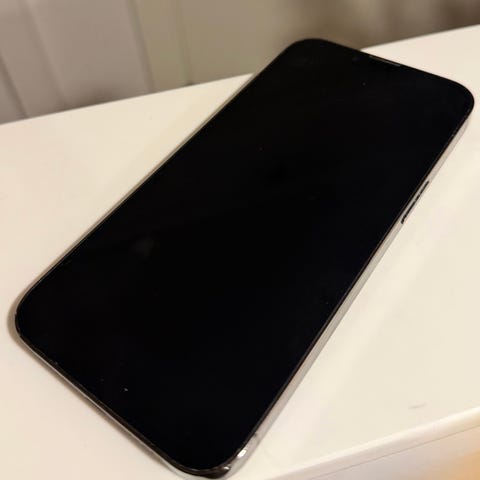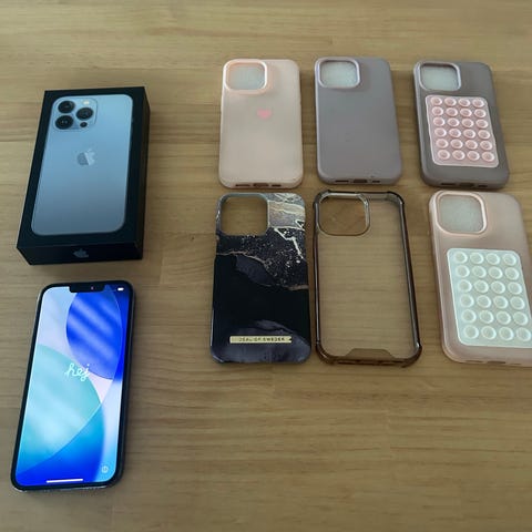 Apple iPhone 13 Pro smartphone med 128 GB lagerplads. Farve: Blå. Er god som ny, men har en ridse/revne bagpå nederst (kan ses på billedet).