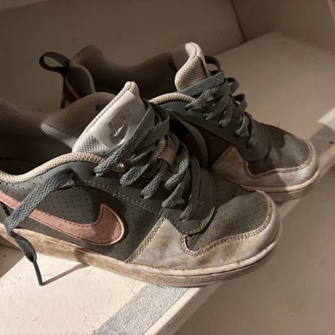 Nike børnesko i størrelse 36,5 til unisex. Kun brugt indendørs (til dansekonurrence) Skoene har en kombination af rød og sort farve og er designet med snørebånd og velcrolukning for bedre pasform og støtte.