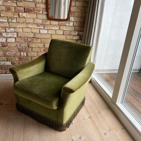 Fin, retro moderne lænestol. I god og pæn stand. Fra hjen uden røg og kæledyr.