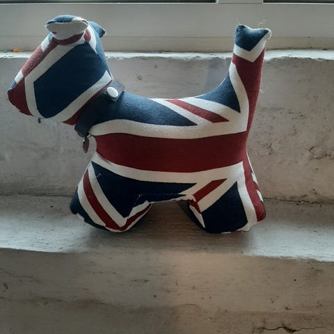Dørstopper i træ med tekst : DOG'S ALLOWED