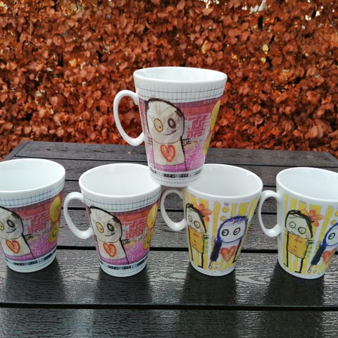 Poul Pava kaffekrus med kunstnerisk motiv i forskellige farver. Krusene er fremstillet af porcelæn og har unikke tegninger, der adskiller hvert krus. Passer til servering af varme drikke som kaffe eller te.