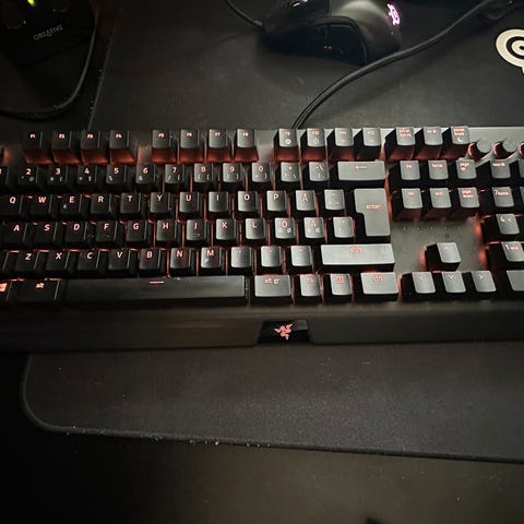 Mekanisk/optisk tastatur med RGB Chroma, medieknapper og håndledsstøtte.