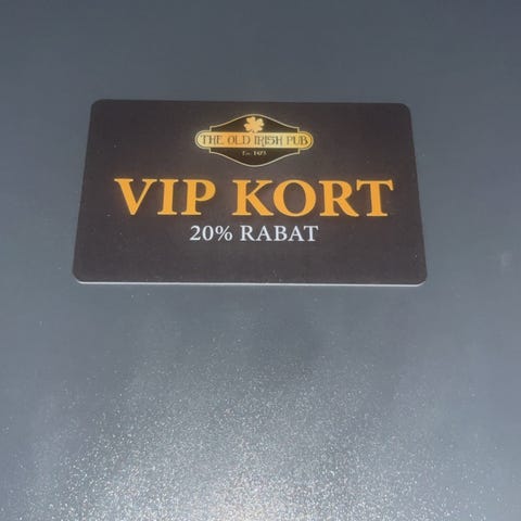 VIP Kort med 20% rabat, designet til brug i The Beer Shop.