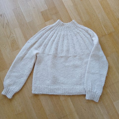 Lækker hjemmestrikket sweater "Marble" (opskrift fra PetiteKnit) i fed mohair og uld. Strikket i lækre garner; Fed håndfarvet Mohair fra Sabine Siestoe farve "Rustent Skrammel", Snefnug i Natur fra CaMaRose og Peruvian fra Filcolana i farven Marcipan. Samlet garnpris er 1.300,-