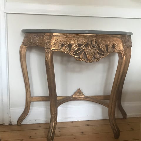 Antik entremøbel med spejl og marmor bordplade 240 cm høj og 70 cm bred