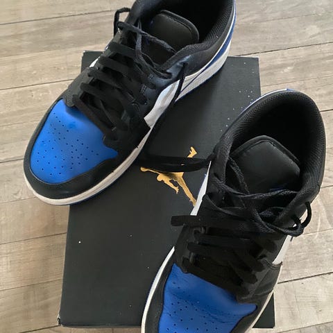 Nike Air Jordan 4 sneakers i størrelse 40. Skoene er i hvidt og blåt materiale og designet til både komfort og stil.