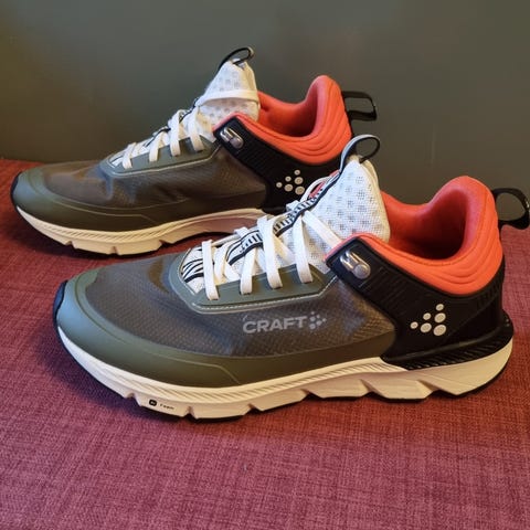 Skoene er designet til vandring og har en robust konstruktion, der egner sig til udendørs brug.