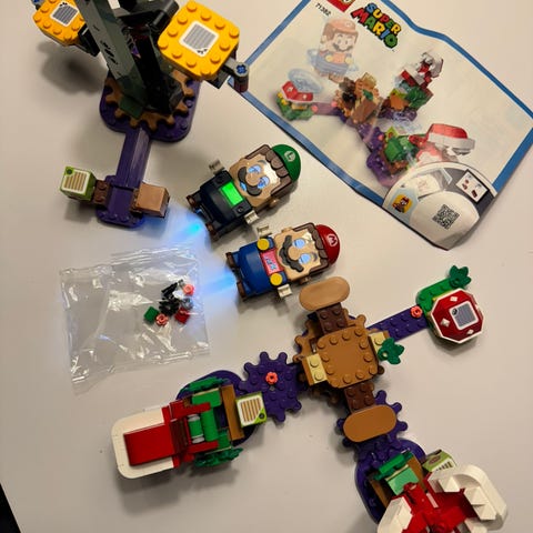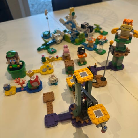 LEGO Super Mario med flere figurer og elementer fra Super Mario-universet. Indeholder karakterer som Mario og Luigi, samt forskellige platforme og tilbehør. Byg en kreativ bane og lad Mario eller Luigi hoppe rundt på banen på tid.