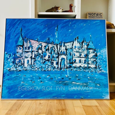 Litografi af Aarhus Musikhus af Birger Lindahl P. Indrammet. Måler 100 x 70 cm.