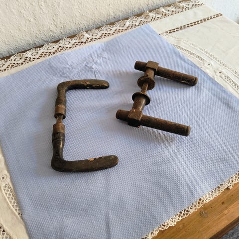 Låsemekanisme med tilbehør inklusive greb, nøgler og monteringsdele. Metalmateriale, egnet til montering i dør.