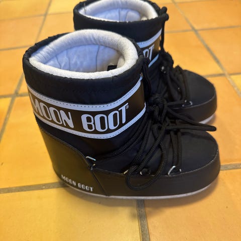 Moon Boot snestøvker i størrelse 38. Støvlerne er mørkeblå og er lidt mindre end den originale model og derfor lidt lettere at gå i til hverdag. Fremstår flotte og uden synlige brugsspor.