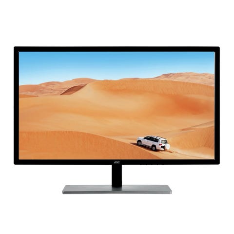AOC 32" buet skærm gamer skærm med sort kabinet. Skærmen har en buet form, der kan forbedre synsoplevelsen ved brug til arbejde eller underholdning.