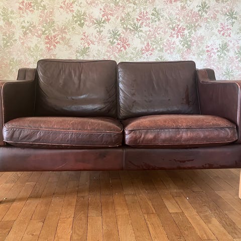 Solid SKOUBY lædersofa i flot stand. Ingen fejl på det sorte ægte læder eller det massive lakerede bøgetræ. De angivne mål er største længde, bredde og højde. Sædehøjde 43 cm (sædedybde 53 cm)