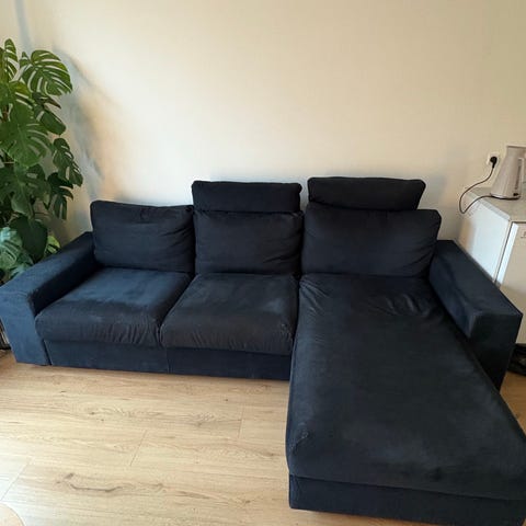 3-pers. Vimle Sofa fra IKEA med chaiselong med opbevaring hvori der er ventilation.