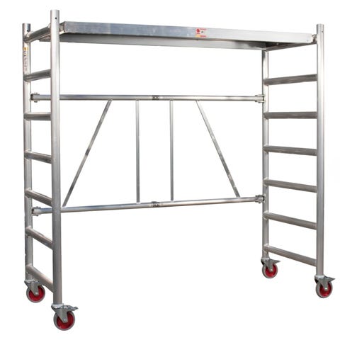 Kraftig håndværkerkvalitet i aluminium til både udendørs og indendørs opgaver. Fuldsvejste rammer og en platform med skridsikker og vandfast finer, sørger for sikkerhed og stabilitet. Stilladset leveres med Ø125 mm. hjul med bremse (ombytning til større hjul kan tilkøbes) Foldestilladset er velegnet til opgaver hvor der ikke kræves den helt store arbejdshøjde – både indedørs og udendørs. JUMBO Foldestillads kan udbygges efter behov – med tilhørende udbygningssæt og i kombination med JUMBO Rullestillads og løsdele herfra.
