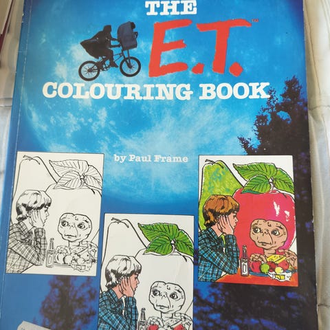 - E.T. Malebog fra 1982 af Paul Frame. Udgivet i UK af Kingfisher Books, World International Publishing. 94 sider. Måler 21x27,5cm. Fuldstændig som ny (der har ikke været malet i den).