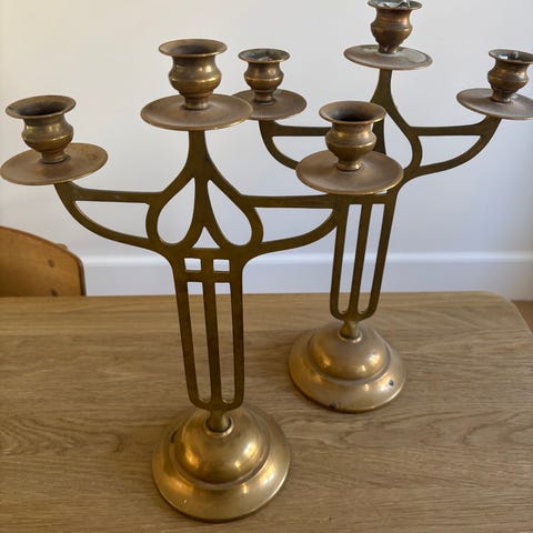 2 jugendstager, messing, 2 jugendstager i messing. I pæn stand. Arvet efter en gammel dame.