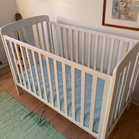 Der medfølger en god og allergivenlig madras fra BabyDan, 60 x 120 x 10 cm. -ingen uheld på madrassen og ingen pletter.