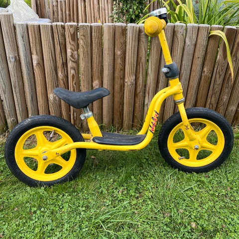 Puky Løbecykel i blå farve med stel i metal. Cyklen er designet til børn og har et lavt trinbræt for nem adgang. Fremstår med rust på styret og stellet, fungerer upåklageligt - så det er kun udseendet som er "påvirket" 😊