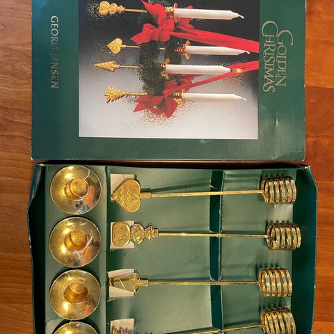 Georg Jensen Green Christmas Jul dekoration ornament. Fremstillet af metal med en guldfarvet finish, designet til juleudsmykning.