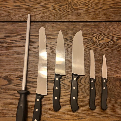 Sælger disse 4 knive da jeg har fået nye. Virker som de skal og trænger bare til en slibning.
