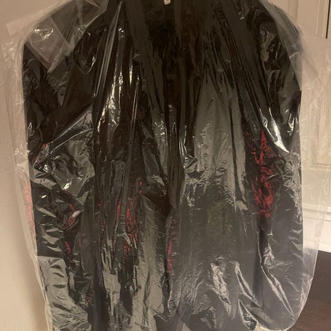 Ingen huller, pletter eller synligt slid. Har hængt i skab og er fra røgfrit hjem.