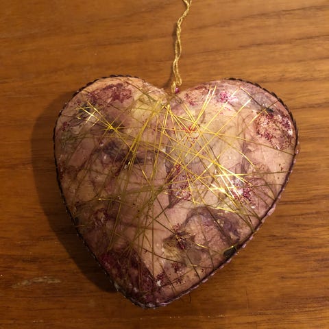 4 hjerter beklædt med valmuer, guldsnor og palietbånd