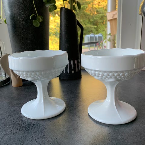Hvid opsats i Opaline/Opalglas, med et flot mønster. Den er står i pæn stand.