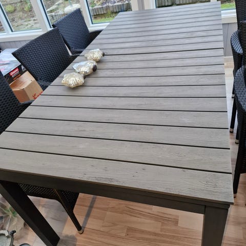 Tonnare havebord med mål på 200 cm i længden og 100 cm i bredden. Bordpladen er i beton grå farve. Velegnet til udendørs brug i haven eller på terrassen.