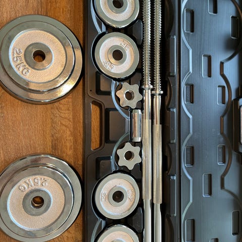 Vægtstangsæt med vægtskiver og låsemøtrikker