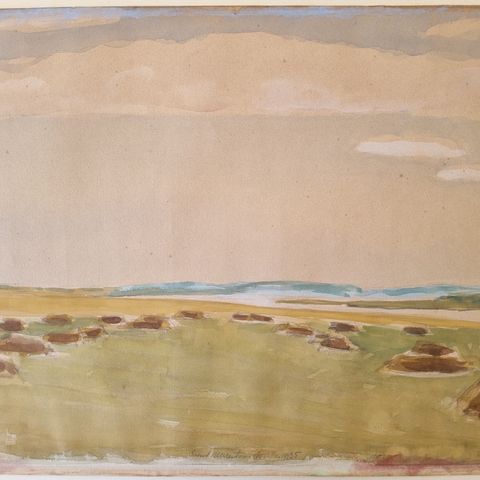Maleri signeret SA i monogram for Svend Albrectsen. Forestiller et udendørs landskab med en pergola, gårdsplads, havelåge og huse i baggrunden. Maleriet er udført i oliemaling på lærred og indrammet i en gylden ramme. 100+80 cm uden ramme.Indrammet ,signeret og dateret.