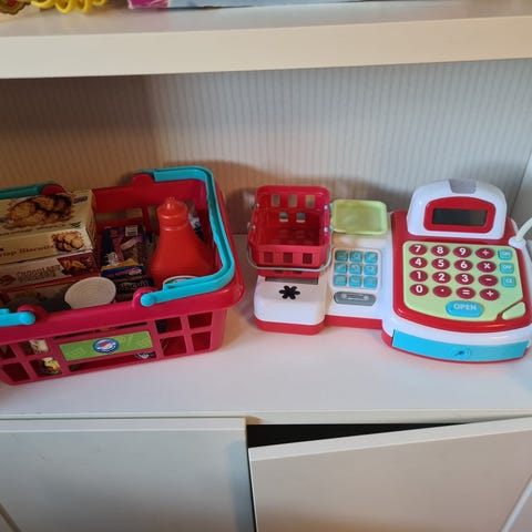 Legemad, 2x gryder og en plast bakke til legekøkken