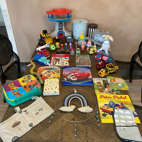 Børnepakke med blandet legetøj.