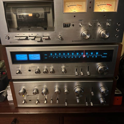 Fuldstændig unikke Pioneer cs-3000a højtalere. De vejer hele 32 kg stk. Står med alle de originale komponenter. De er ikke afprøvet. Så forvent at skulle istandsætte dem. Men en Ultra sjælden højtaler som fortjener at blive bragt til live igen.