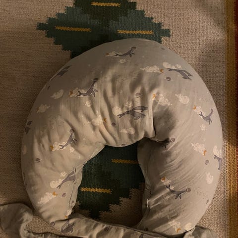 Købt i oktober 22. Brugt af to børn, men i god stand. Både pude og betræk er vasket i neutralt vaskemiddel.